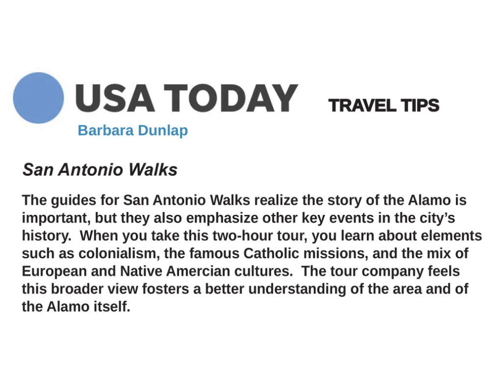 Wary of organized tours for tourists, I wasn’t planning on touring in San Antonio. After reading the reviews, I decided to give it a try. What a great choice! The 2 hour tour flew by and I learned more per minute than I could have imagined. The guide’s story was artfully crafted to have an arc that took you from time period and location to the next. Fantastic ability to help us visualize the drama and bloodshed that is San Antonio’s legacy, including the lesser-known roles of native and Texano populations. I would recommend this hands down, and already have. A must-see in a must-visit city.