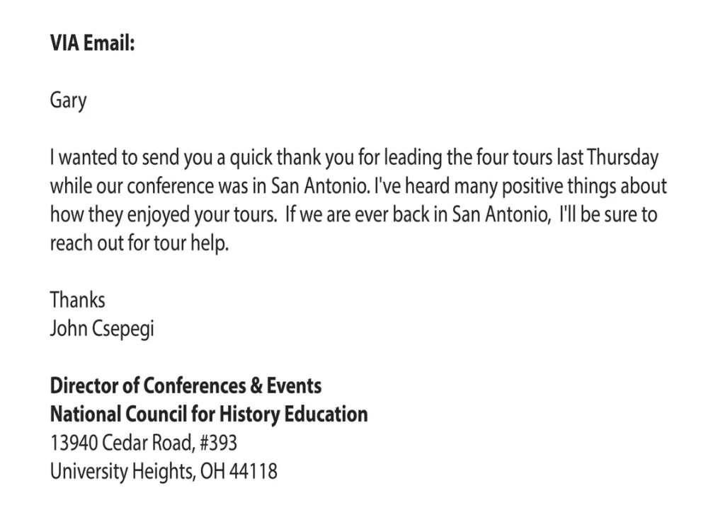 Thank you Gary – you were the highlight of our San Antonio visit.